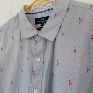 Michael Brandon Slim Fit Men's XL Button-Down Shirt Striped Flamingo Print