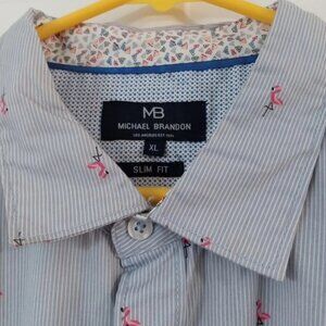 Michael Brandon Slim Fit Men's XL Button-Down Shirt Striped Flamingo Print Long Sleeve 100% Cotton Measurements are Pit to Pit:25" Length:32" Very Good Condition