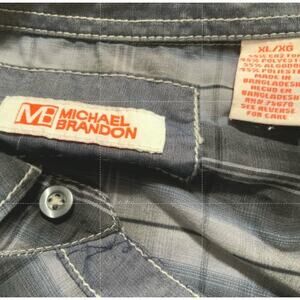 Michael Brandon Tartan Plaid Shirt Mens XL Long Sleeve Chest Pocket Button Up