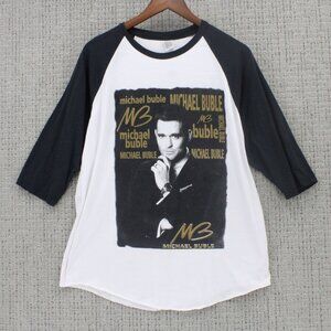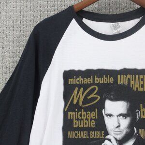 Michael Buble Baseball Shirt Mens Large L White 3/4 Sleeve 2019 Tour Concert