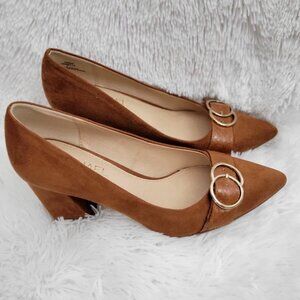 Stylish and versatile, these block heels feature a pointed toe design with buckle accents. Comfortable for work or casual wear, adding sophistication to outfits.