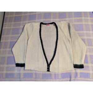 Michael Carrie Mohair Sweater Cream Black Medium Flower Silver Buttons Vintage