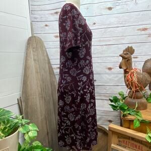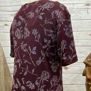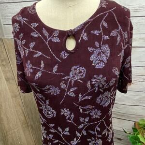 Michael Carrie Short Sleeve Glitter Roses Dress Small Stretchy Wine Purple