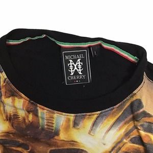 Michael Cherry T-shirt Egyptian Graphic Tee Short Sleeve Mens Large Cotton Crew