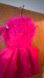 Faux feather strapless dress with draped bottom.