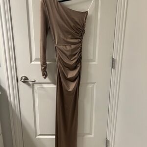 Michael Costello One-Shoulder Maxi Dress in Taupe
