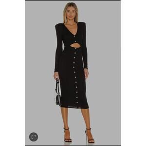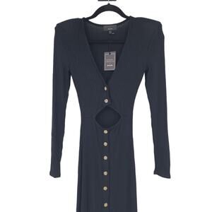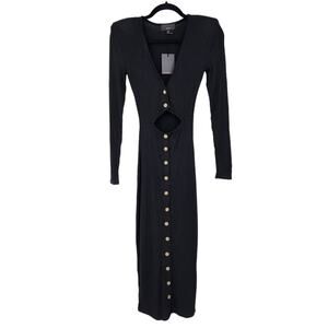 Michael Costello Revolve Mila Midi Button Front Cut Out Bodycon Dress Size XXS