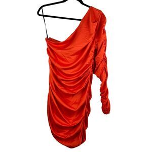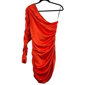 Michael Costello x Revolve Oscar Sexy Mini Dress Size Medium One Shoulder Red Orange