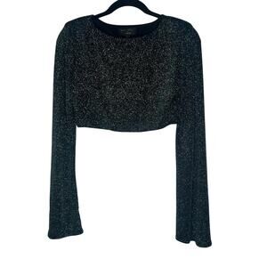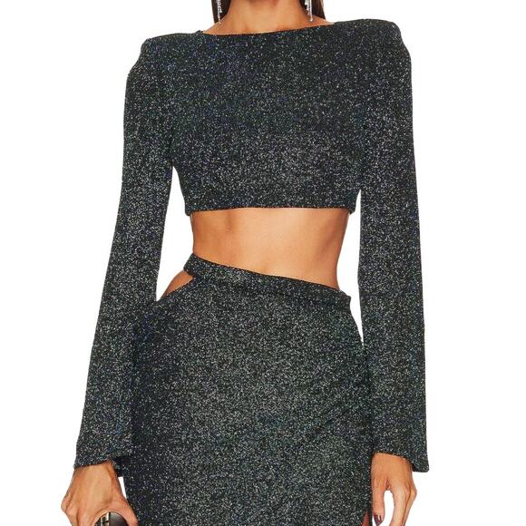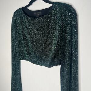 Michael Costello X Revolve Yolanda Green Shimmering Long Sleeve Crop Top Small