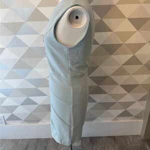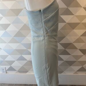 This elegant one-shoulder dress features a sleek design perfect for any occasion. The soft blue color adds a touch of sophistication to your wardrobe.