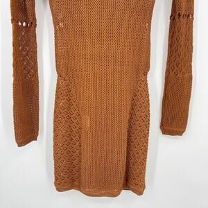Michael Costello x REVOLVE | Allegra Mini Dress in Copper Brown Crochet Cover Up