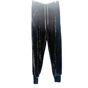 Michael Costello x REVOLVE Women's Charcoal Green Paper Bag Jogger Pant Size S. 96% poly, 4% elastane. Hand wash cold. Elastic drawstring waistband. Side slant pockets. Crushed velvet fabric. Item not sold as a set. 41 cm at the knee narrows to 20 cm at the leg opening. Imported.