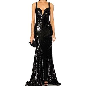 Michael Costello x REVOLVE Loren Black Sequin Gown - XS