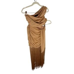 Michael Costello x REVOLVE Tania Drape Fringe Gown One Shoulder Formal Party XS