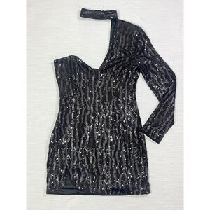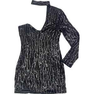 Michael Costello x Revolve Annie Mini Black Sequin Evening Cocktail Dress Size M