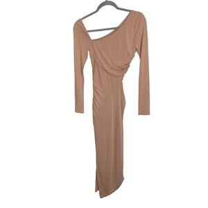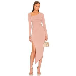 Michael Costello x Revolve Ansel Asymmetrical Dress Side Cut Out Slit Nude Sz XS