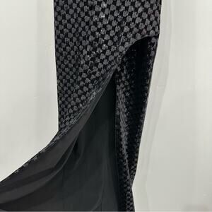 Michael Costello x Revolve Emmanuella Black Sequin Gown With Front Slit.