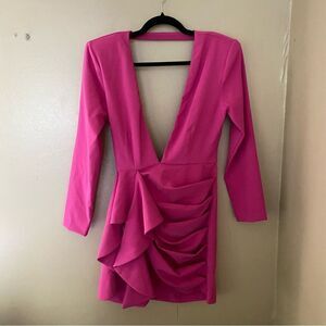 Michael Costello x Revolve Fena mini dress fuschia pink draped cocktail Sz M