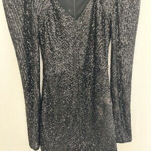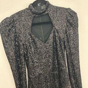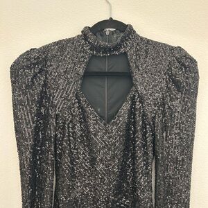 Michael Costello x Revolve Sequin Mini Dress Black Small Cutout Bodycon