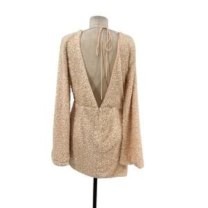 Michael Costello x Revolve Valerie Dress Mini Long Sleeve Sequin Ivory Medium