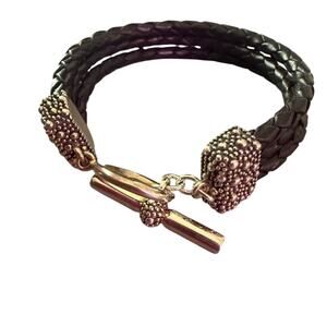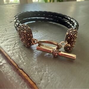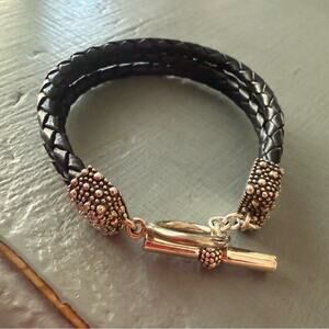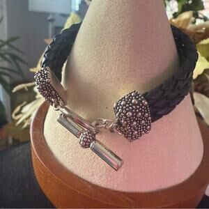 Michael Dawkins 925 Sterling Silver & Leather Multi Strand Toggle Bracelet