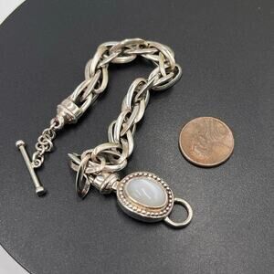 Michael Dawkins Sterling Silver Link Bracelet Moonstone Cabochon Toggle Closure