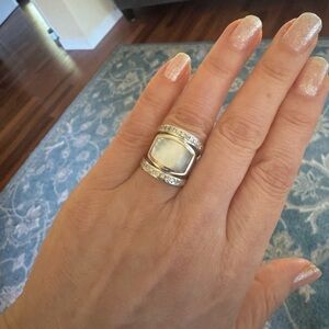 Michael Dawkins White Quartz Diamond Gold Sterling Silver Statement Ring 6