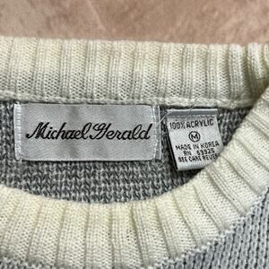 Michael Gerald Vintage 90s Checkered Ombre Knit Sweater Cream Gray Mens M Preppy