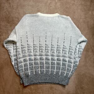 Tight knit geometric print sweater with a cream to gray ombre pattern. Crew neckline. Vintage 1990s.