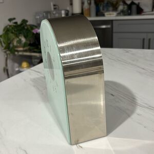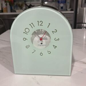 This EUC Michael Graves teal and stainless steel desk clock is modernistic. Back is magnatized.