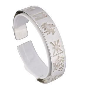 Description: Embark on a symbolic journey through Irish heritage with this vintage Michael Hilliar sterling silver cuff bracelet. Crafted with meticulous attention to detail, each symbol engraved on the bracelet tells a story of Ireland's rich history. From the unknown past to moments of triumph and struggle, this bracelet encapsulates the essence of Irish culture and resilience. Marked with "SD," "925," "MADE IN IRELAND," and the Irish Assay Hallmark, this bracelet reflects its quality craftsmanship and authenticity. Whether worn as a statement piece or cherished as a collector's item, this bracelet is a true celebration of Irish heritage. Please consider the photos as part of the description. The item is in good vintage condition.
