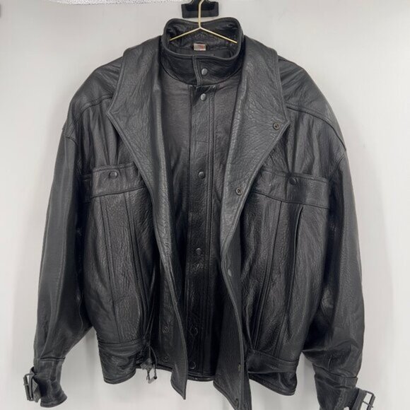 Vintage leather jacket, iconic 80s/90s streetwear look biker jacket, oversized fit, retro style, streetwear classic, North Beach leathericonic 80s/90s streetwear look