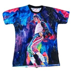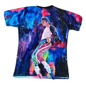 Michael Jackson Abstract Portrait Watercolor Drawing Graphic Black Tee Size Med
