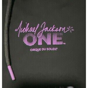 Authentic Michael Jackson ONE Cirque du Soleil full zip hoodie XS. Classic black sweatshirt with embroidered chest logo and striking metallic gold-lined hood. Features ribbed cuffs and hem, front pockets, and heavyweight fabric for warmth. A must-have for collectors and fans of Michael Jackson or Cirque du Soleil.