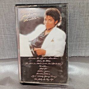 Up for sale is a vintage original Michael Jackson Thriller cassette tape CASE. This is for the case and the inner sleeve paperwork/artwork only. There is no cassette tape. This is an original case from 1982 and I thought it would be nice for someone to have as a display piece either on a shelf or to use perhaps for a Halloween decoration. Thriller has become synonymous with Halloween so this is a good time to list this. The case does have obvious wear, but that's normal for being around for 40 years. Not much else to say. Thanks for looking!