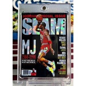 The product is a lot of 16 custom trading cards featuring the legendary basketball player Michael Jordan. The cards are designed with a cracked ice holographic art style and are original prints manufactured in 2025. These cards belong to the National Basketball Association (NBA) league and are associated with the Chicago Bulls team. Each card is a standard size sports trading card with features like short print, parallel, and insert. Made in the United States, these unique cards are a must-have for any basketball card collector or fan of Michael Jordan.