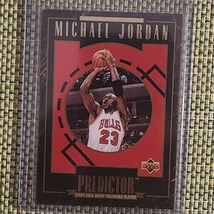 Michael Jordan Predictor card featuring a dynamic action shot. Bold red and black design with gold accents.