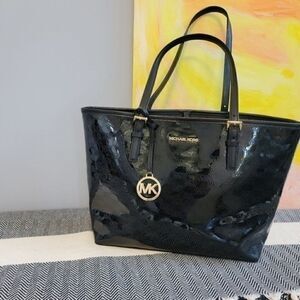 Michael KORS Jet Set Travel Carryall Tote Black Patent Leather MK