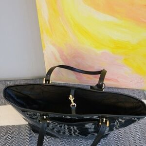 Michael Kors Jet Set Travel Carryall Tote Black Patent MK