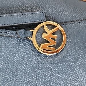 Voyager tote bag is the ultimate carryall for the modern jetsetter. Reimagined in a spacious, clean-lined silhouette, it features a front slip pocket for easy access to your phone and a generous interior that can store a laptop. The pebbled leather exterior ensures timeless appeal. Voyager tote bag receives a chic update. Crafted from pebbled leather in a clean silhouette, this style features slim shoulder straps and top-stitch detailing for a refined finish. We love how the MK charm hardware lends luxe appeal.