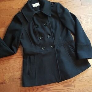 MICHAEL KORS black M coat. 60%wool, 30%polyester, 10% rayon. Two side pockets. Size M. Only used few times.<STH>