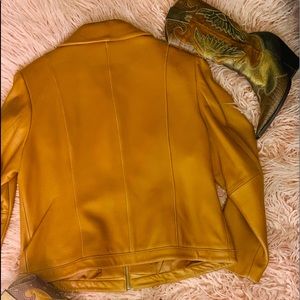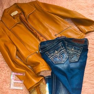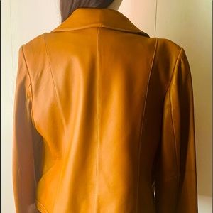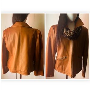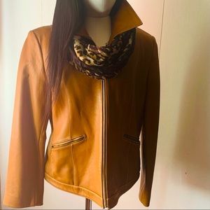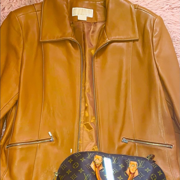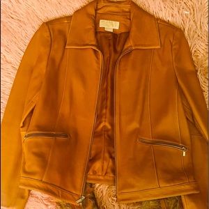 Michael Kor honey color soft leather waist jacket silver zipper two pockets