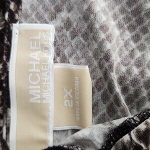 Michael Kores Dress Size 2X womens faux wrap snake skin brown white