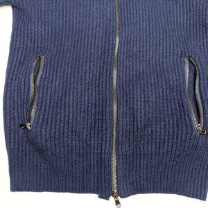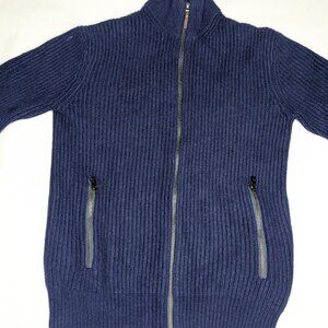 Michael Kors 100% Cashmere Ribbed Navy Blue Full Zip Sweater Cardigan Medium