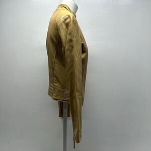 Michael Kors 100% Genuine Leather Jacket Moto Coat Full Zip Light Tan NWOT Small