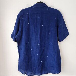 Michael Kors 100% Linen Slim Fit Button Down Shirt Sunglasses Print L
