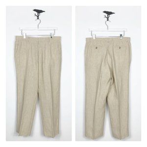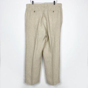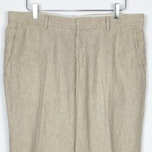 Michael Kors 100% linen pants in tan with khaki stripes. 2 front pockets & 2 back button pockets. Zip, bar tab & inside button tab close. 36x30. In great condition.