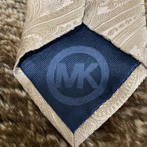 Michael Kors 100% Silk Gold and Cream Paisley Tie. Sophisticated paisley design. Perfect for formal and business wear. Adds elegance to any outfit. Last photo shows a little pink sheen. If you dry clean, I’m sure it will come out.