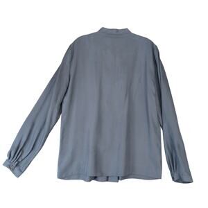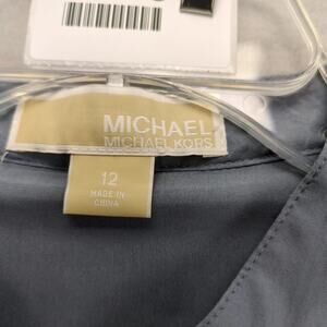 Michael Kors 100% Silk Gray Pleated Blouse Women's 12 Keyhole Neck Long Sleeve