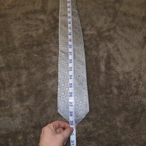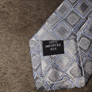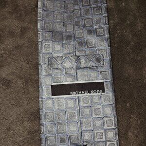 Michael Kors 100% Silk Tie Gray Silver Geometric Print Modern Necktie